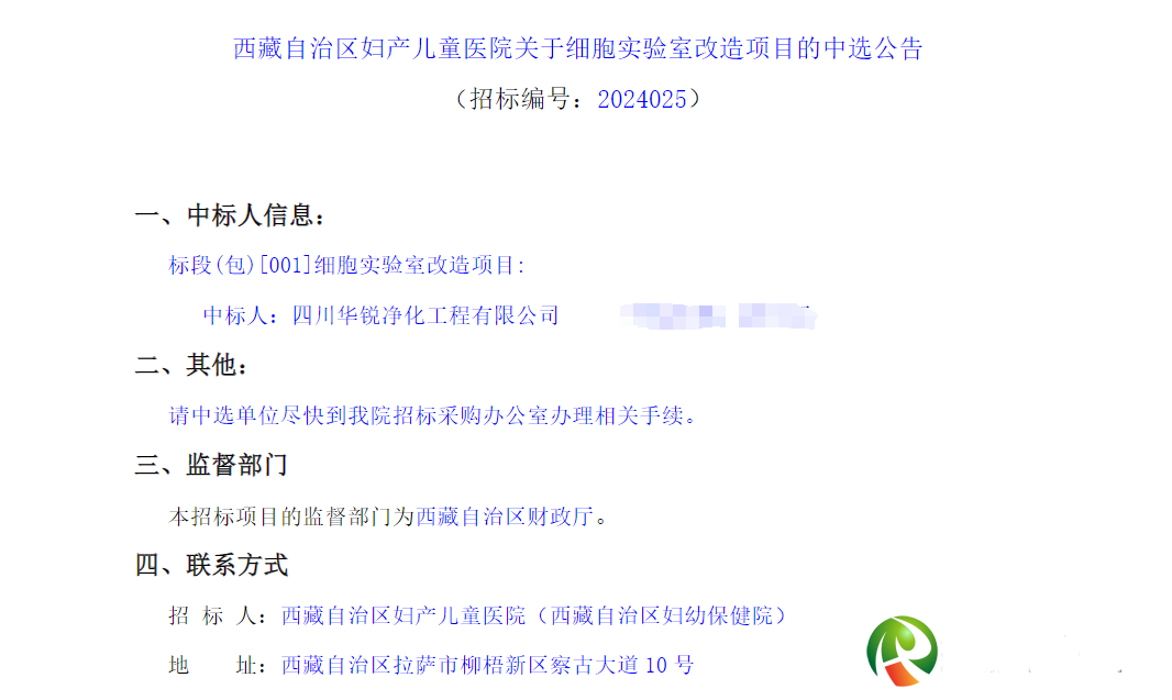 西藏拉薩細(xì)胞實(shí)驗(yàn)室建設(shè)施工項(xiàng)目中標(biāo)
