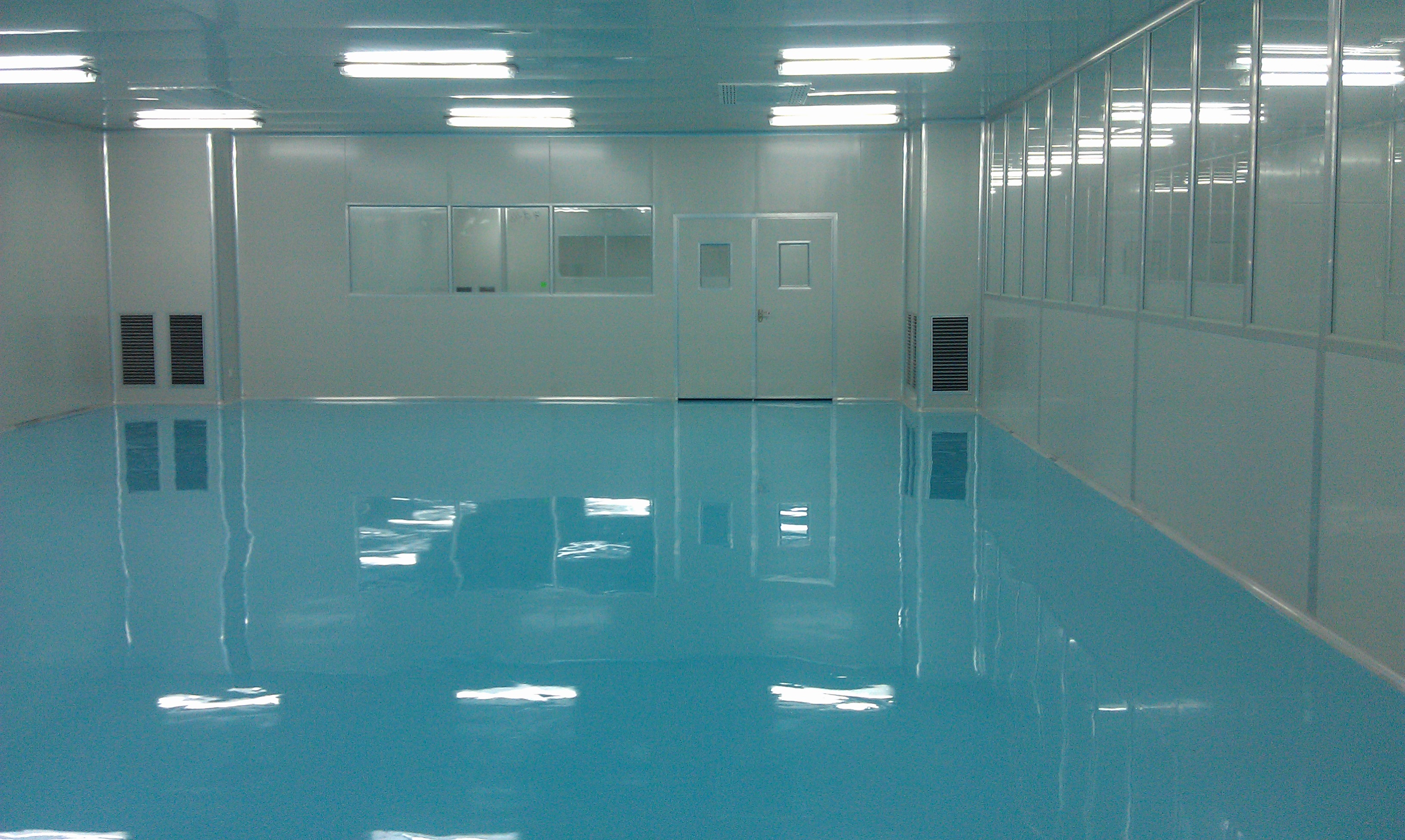 (2)地面要求:潔凈地面要滿足生產(chǎn)工藝要求,表面應(yīng)平整、耐磨、易清洗、不易職聚靜電、避免眩光、不開裂、不起塵表面不易吸附塵粒等,潔凈室用得比較多的地板材料是環(huán)氧樹脂地板及通風(fēng)地板,環(huán)氧樹脂地板通常用在100K至1K潔凈車間,通風(fēng)地板用在1K及更高級(jí)別的潔凈車間。并根據(jù)生產(chǎn)工藝要求選擇是否做防靜電功能。