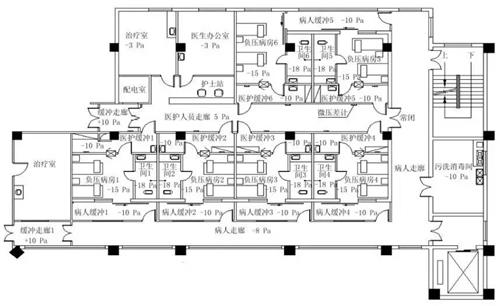 針對以空氣為傳播媒介的傳染病毒的特性,提出以整個負(fù)壓隔離病房區(qū)作為污染受控隔離對象設(shè)計(jì)的思路和特點(diǎn),再結(jié)合合理的平面布局分區(qū)、相鄰區(qū)域及房間之間的壓差控制、過濾器的合理配置以及氣流組織形式的控制等措施來提高負(fù)壓隔離病房的隔離能力。